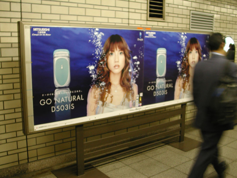 A pop star with her "natural" bubblicious image advertises a Java-enabled Mitsubishi handset for NTT DoCoMo.