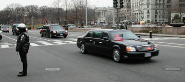 Ryan and I always do show and tell - it's a sizeable part of our time together. Looking over books, video clips, web sites, listening to music. Ryan turned me on to Charanjit Singh. I gave him a copy of the book Satellite of Love. Today, he showed me a great video Nada, and some unusual video mixings of pharmaceutical ads "Radial Medicate" from David Tinapple on the reline.net DVD collection of video art. It's only about $12 - a good cheap fee for unusual video art, though Ryan did say he wished there were more clips included. Most of the creative projects we covered have MP3s available online. I love talking about music here that I can link to so anyone can download it and experience it for themselves! I want those creative folks to be able to make money, and I like being able to support them, to buy a piece of it, a collection maybe - often a DVD. I'm increasingly intrigued by this idea of making short bursts of intense media for downloading (MP3s, video clips) and then selling a DVD or other merchandise to support the work. Dealership discusses this kind of distribution in this interview with Creative Commons. Ryan awakens my desire to work with video, taping myself and the world I see, and preparing it for distribution. Time to start saving up for my own digital video camera! And then maybe a used computer to edit clips on. I already know where the video clips will end up once I get started - recently I've been watching more TV and video clips over the Internet than I have over regular TV. February 08, 2003Mr Hall Goes to WashingtonI was in Washington DC for a conference. I was staying at a hotel near the White House. Oh great - I'm staying near the White House, I thought, if I fart loud enough, can the President hear me? Motorcade A flotilla of armored Cadillacs and sport-utility vehicles festooned with blue and red lights plowed steadily down the cleared street as pedestrians stood at a curious distance and cars impatiently waited a return to normal commerce. I wondered who was inside - I asked the cop with his blocking arms nearest to me. "How important do you have to be to ride in a motorcade?" ![]() I wondered if it was someone's brother or sister - visiting them at the White House. "Okay, thanks for giving me back these golf tapes. I'll see you at Mom's in two weeks." Walking the White House My last afternoon, I took a walk around the President's mansion. It was very locked down. Roads around it were patrolled by foot police and guarded by vans and guardhouses. Impressive-looking gates and barriers kept anything larger than a squirrel at 150 yards (note to self: if I need to get a camera in on the White House grounds, strap it to a small furry mammal). I passed two police - one inside the fence, one outside. The one closest to the President was dressed like a tech-Ninja - a neck to toe black pasti-fabric suit accessorized with a vest of pockets. He was carrying some kind of folding machine gun hung from his shoulder, a large clip with small bullets on top. Adjusting my notebook and camera, I cheerfully asked "Are those rubber bullets or real bullets?" I remembered from my American History class that Andrew Jackson had an inaugural party that involved a rather large party on the White House grounds with a great many kegs of whiskey - I believe it was open to the public. I wondered when all these fences were built. I stuck my head through the bars as far as I could to look at the seat of government as it must have looked before the President lived at a greater, more secure distance from his people. The cold bars seared my temples. ![]() Despair set in - democracy was about keeping government close to the people. But this government seemed quite far away from me. As I stood at the South end of the White House lawn, I lifted my head to hear the conversations of the other passing citizens and visitors. A half dozen middle-aged women walked by, eying the large off-white mansion, and one said, "I heard it's for sale!" The others chuckled.