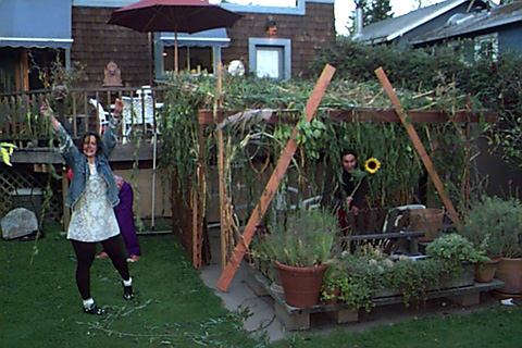 the squash that fed us each sunday now are hanging from lashed together bamboo and cornstalks