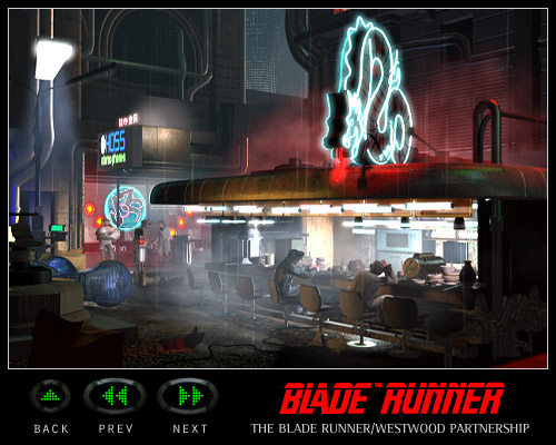 Blade Runner, the game, definitely envelops you in the world of the film. While the plot of the game is different, it shares with the movie many of the same supporting actors, rendered in nearly smooth computer animated figures and speaking with the same voices. Fortunately, Westwood was able to secure rights to the music as well, so the Vangelis score adds a critical sonic backdrop.